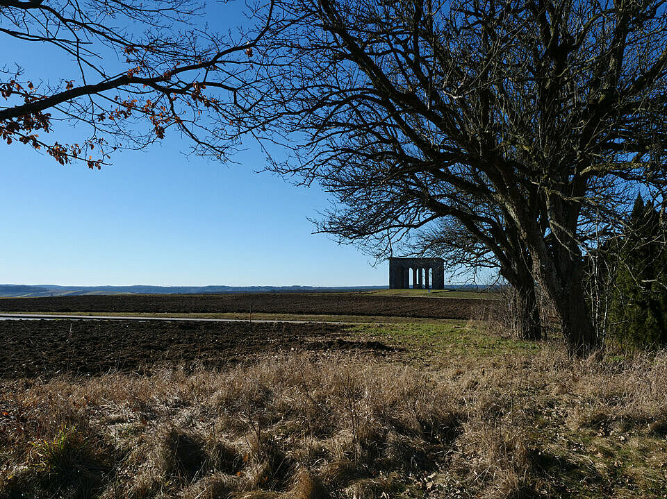 Im Frühjahr 1983 schlenderte ich mit einem Freund aus München einen Feldweg Richtung Oberschützen entlang. Schon von der Ferne leuchtete uns der aus Stein erbaute Quader mit je drei Pfeilerarkaden an den Seiten entgegen. Nun, durch das Licht der schon etwas flach stehenden Nachmittagssonne zusätzlich exponiert, hob er sich von dem in der Ferne aufsteigenden, stellenweise noch mit Schnee bedeckten Wechselgebirge ab und reckte seine Säulen und das von ihnen getragene Gesims stramm und mannhaft wie eh und je ins mächtig gewölbte Firmament.